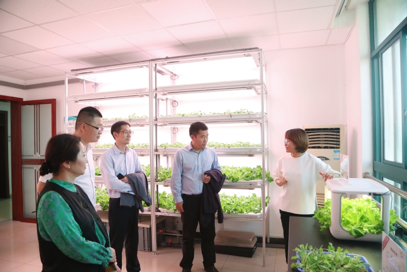 舒刚一行实地考察了宠物医院、校史馆、花艺实训中心、智能种植实验室等校内场馆。