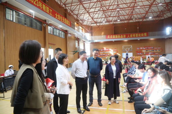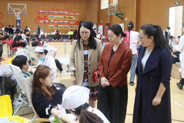 献血期间,党委书记蔡红,院长陈立婧,党委副书记、副院长邵阳,工会主席高功辉等一行来到现场,亲切关心献血师生身体情况,安抚他们的紧张情绪,对师生积极参与无偿献血、勇于担当、传递爱心、奉献社会的行为给予了充分肯定与高度赞扬,对现场志愿者的辛勤付出给予亲切关怀与热情鼓励。相关部门及各系部教师也在现场进行各项流程的组织协调。
