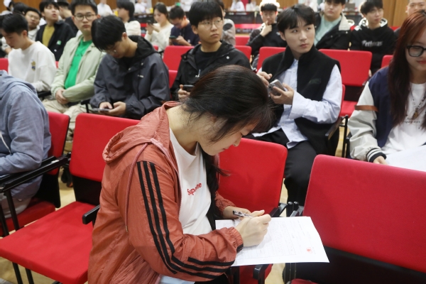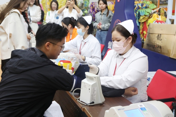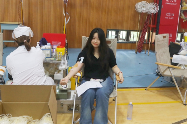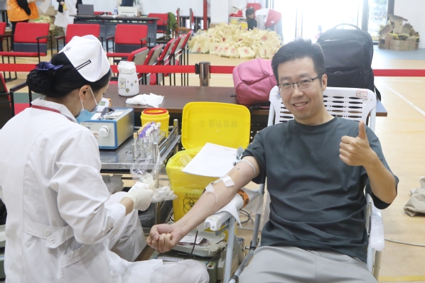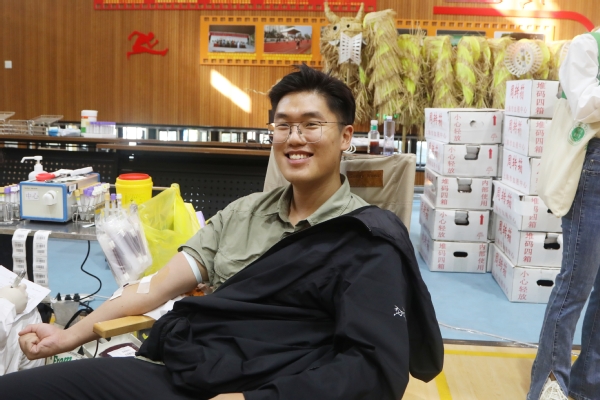 献血现场设置了等候区、体检区、献血区、休息区等工作区域。上午8点,师生们在现场工作人员的引导下,有序入场并登记检查,耐心地配合着献血流程,遵从医护工作人员和志愿者的安排,依次进行信息审查、测量血压、抽取血样等程序。现场充满着爱心的温暖气息,将一袋袋鲜红的血液汇聚成一股股暖流。“我献血,我光荣”,这是每一位献血师生发自内心的声音。