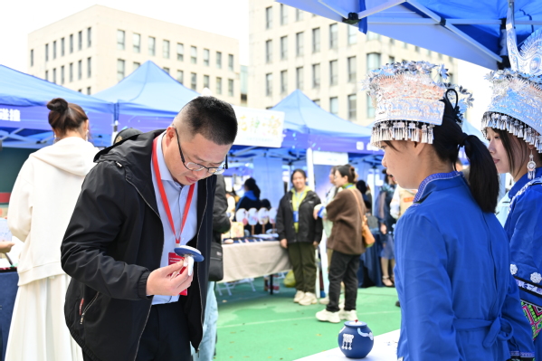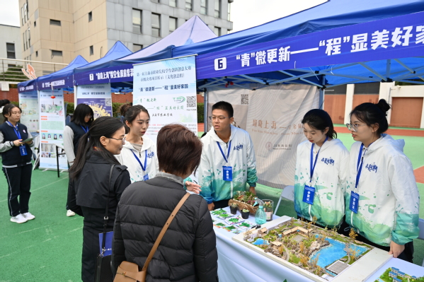 决赛采用集市的形式,各职业院校127个项目同场竞技。现场气氛热烈,我院各团队在指导老师带领下,通过实物或模型充分展示了项目的亮点和成果,耐心为现场评审专家、观众等讲解项目设计思路、应用场景及市场潜力。