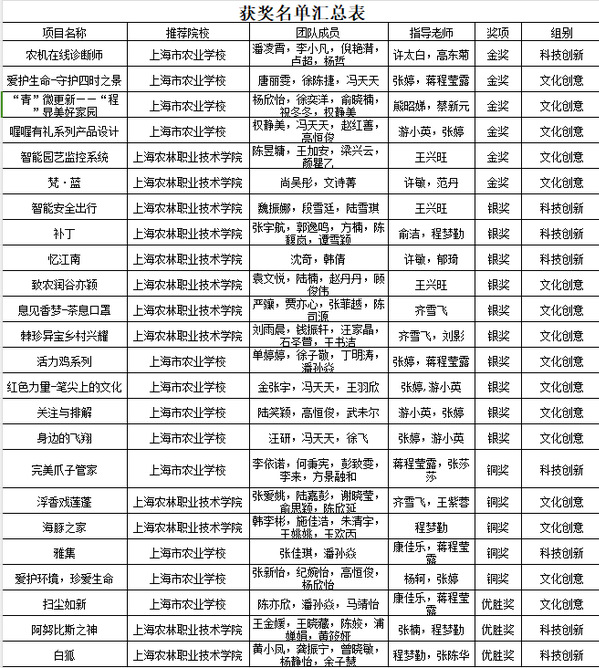 11月11日,第一届上海市职业院校学生创新创意大赛决赛暨第四届上海市中职学生创新创业大赛在上海市工业技术学校举行。在日前公布的获奖名单中,我院获6金10银5铜3优胜的优异成绩和优秀组织奖。大赛由上海市教育委员会主办,我院及上海市学生事务中心、上海市高等教育学会高职高专创业教育专业委员会、上海市工业技术学校承办,上海教育报刊总社《成才与就业》协办。党委副书记、副院长邵阳应邀出席开幕式,并现场慰问参赛学生。