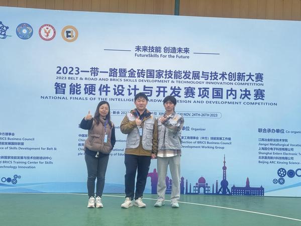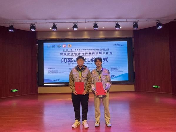 11月26日-27日,2023年“一带一路”暨金砖国家技能发展与技术创新大赛智能硬件设计与开发赛项在江西举行,本次比赛由金砖国家工商理事会中方理事会、“一带一路”暨金砖国家技能发展国际联盟、中国科协“一带一路”暨金砖国家技能发展与技术创新培训中心主办,竞赛级别为国际级中国赛区、国内赛,来自全国13个省市地区、60余支参赛队参加竞赛,其中高职组共39支参赛队。智工系王子祥、周昕皓两名同学在比赛中发挥稳定,荣获三等奖。