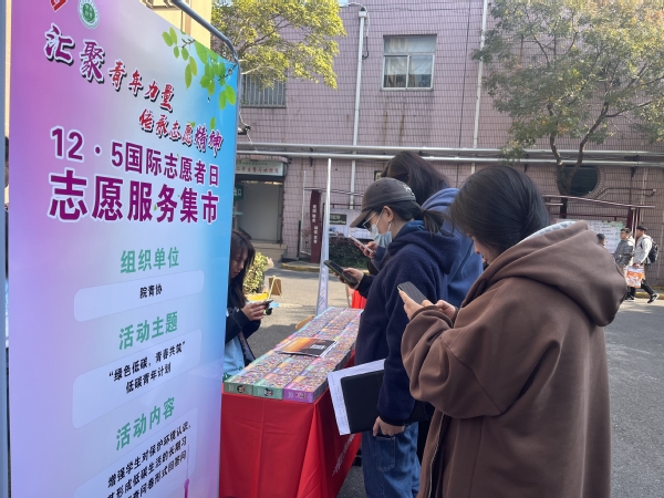 今年是第38个国际志愿者日,为深入学习贯彻习近平新时代中国特色社会主义思想,弘扬“奉献、友爱、互助、进步”的志愿精神,12月5日,团委以“汇聚青年力量,传承志愿精神”为主题,开展志愿服务主题集市,党委副书记、副院长邵阳出席,学工部、团委、各系党总支、团总支、院青协及各系志愿者参加集市活动。