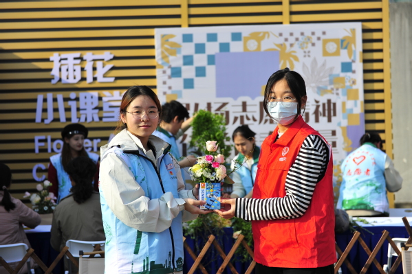 院青协在现场发起“绿色低碳,青春共筑”低碳青年计划,通过调查问卷形式宣传环境保护知识;植科系开展插花互动教学,与同学们一起体验插花的魅力;动科系开展文明养宠宣传,提高学生文明养宠意识;创意系推出志愿服务时长兑换文创产品及志愿风采录收集;生药系在现场开展生态文明志愿活动,设置“绿色银行”回收同学们的废旧书本、矿泉水兑换成小绿植;智工系继续推出手机贴膜服务,并现场传授贴膜技巧,引来众多学生驻足参与。