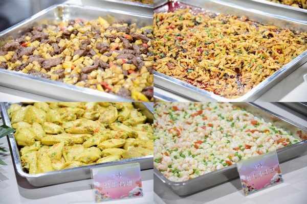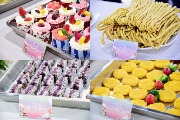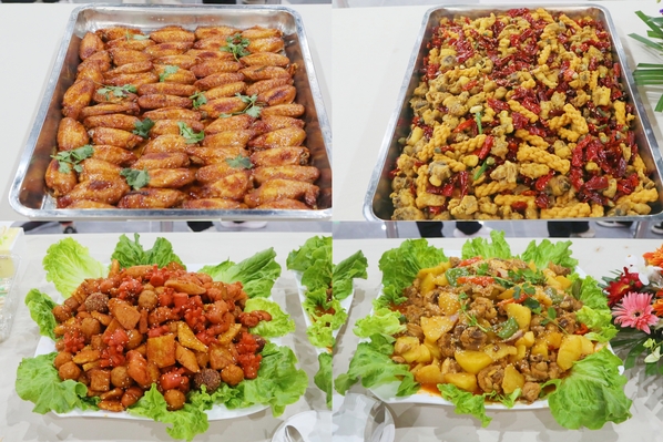 在菜肴烹饪和点心制作比赛环节,参加比赛的大厨们以精湛的厨艺带来了融合经典传承与特色创意的美食。有受师生欢迎的糖醋小排、大盘鸡、石锅香芋、金蒜黑椒牛仔粒等传统红案菜品,有芒果糯米糍、青瓜椰汁卷、芝士水果饼等白案创新菜品,也有烤全羊、大盘鸡、撒子等具有民族特色风味的菜肴。