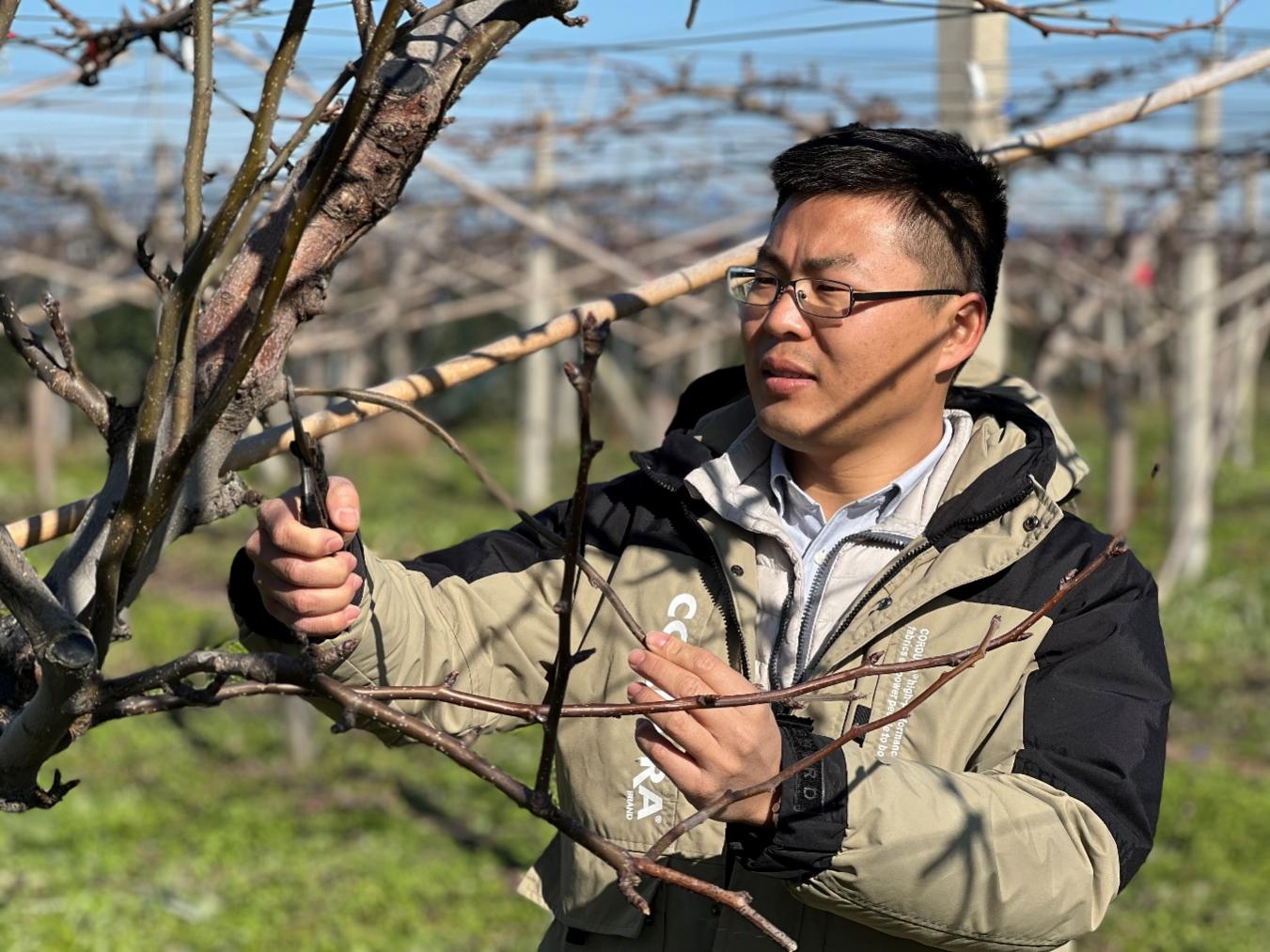 在植科系教师的推荐下,陶煜东赴欧洲、日本等地考察,更加明确了福田家庭农场的发展方向,一是借助省市各级园艺作物标准园创建为契机,不断推进农业品种培优、品质提升、品牌打造和标准化生产提升行动,打造果业绿色低碳产业链;二是开展园区宜机化改造,推进农机装备提档升级,加快设施园艺小型机械、高端智能机械推广,打造农机农艺融合的高标准果品基地;三是创新果园数字化应用场景,提升水肥一体化、环境控制智能化水平,3-5人管理上百亩果园轻松且高效。
