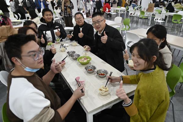 天时人事日相催,冬至阳生春又来。冬至来临之际,学院通过部署安排,特意准备了热气腾腾的免费“饺子宴”,将传统习俗的关怀送给学生,寒冷冬季的校园里洋溢着浓浓爱意。邵阳先后来到学生第一餐厅和民族餐厅,向同学们表达节日的问候,与学生围坐在一起体验包饺子民俗活动,一边唠家常,一边品味传统文化,享受传统节日的乐趣。