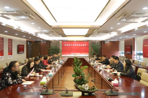 为深入开展学习贯彻习近平新时代中国特色社会主义思想主题教育,进一步加强宣传思想文化工作合作交流,12月29日,松江区委宣传部副部长、区文旅局党组书记何劲峰带领文旅局党组成员一行9人来校调研。党委书记蔡红、院长陈立婧、纪委书记陈谊,党委副书记邵阳、党委委员费国强出席,党办院办、宣传部、学工部、创意系、团委负责人参加。