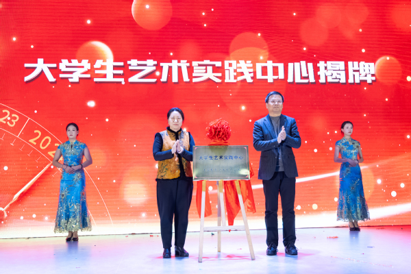 晚会现场,党委书记蔡红、院长陈立婧共同为学院大学生艺术实践中心揭牌,今后将不断推进校园文化建设,着力发挥美育在人才培养中的重要作用。