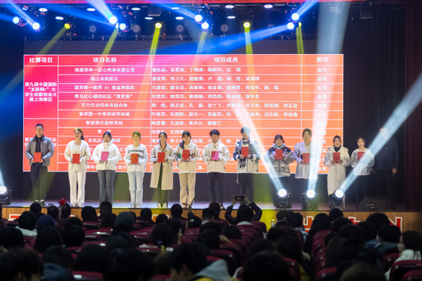 晚会现场还对荣获第九届中国国际“互联网+”大学生创新创业大赛(上海赛区)职教赛道选拔赛、首届上海市职业院校学生创新创意大赛、第八届“汇创青春”上海大学生文化创意作品展示活动一等奖的学生代表以及荣获年度志愿服务标兵、先进个人和优秀寝室长代表进行了表彰,党委副书记、副院长邵阳,党委委员、副院长费国强、副院长张江和工会主席高功辉为获奖学生代表颁奖。