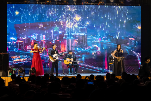 一年一度元旦文艺汇演作为校园文化建设品牌活动之一,是学院践行以文化人、以文育人的优秀办学传统和人文精神的重要体现。整场晚会主题鲜明、催人奋进,200余名演职人员倾情演绎,集中展现了2023年学院高质量发展呈现的新气象、新风貌。同时晚会积极深化典礼育人实效,将学生表演与舞台艺术有机融合,让同学们能够站在“舞台”中央,拥有自己的“高光时刻”。