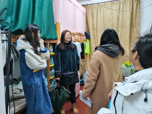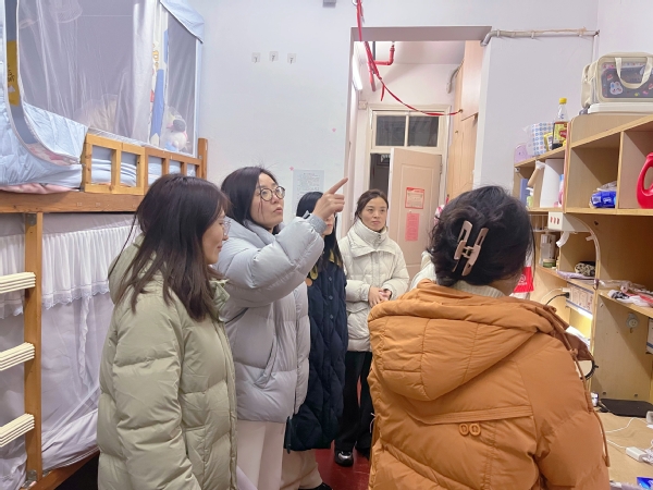 走访宿舍过程中,邵阳与同学们亲切交谈,了解学生假期生活、返校旅途及新学期的打算,嘱咐大家要注意宿舍用火用电安全,谨防诈骗,规律作息,尽快从假期状态调整为积极的学习状态,以良好的精神面貌迎接新学期。看到老师们的到来,同学们非常开心,侃侃而谈,介绍丰富多彩的假期奇遇,热情地向老师们分享家乡特产。学工部及辅导员检查了寝室的安全与卫生情况,提醒同学们勤通风,保持宿舍干净整洁,遵守宿舍规章制度,积极创造更加安全、舒心的居住环境。
