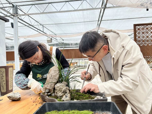 这三场兰展都集中在正月十五前后,为向社会展示学院专业教学和实训的丰硕成果,国兰团队从正月初五就开始了各项准备工作,在上海国兰栽培技艺非遗大师们的指导下,勇于创新思路、积极拓宽渠道,在继承与发扬传统兰艺技术的同时,将盆景与兰花有机结合,设计制作了“寒去春来”“甲辰一品”等山水盆景。同时,为打出“一花一果”的亮丽名片,团队发挥专业优势,利用花期调控技术,将4月盛开的蕙兰“老上海梅”花期提前了近50天,进一步向上海及长三角地区展示了学院培养“有初心、有农心、有匠心、有匠才”的高素质技术技能人才的新成果。