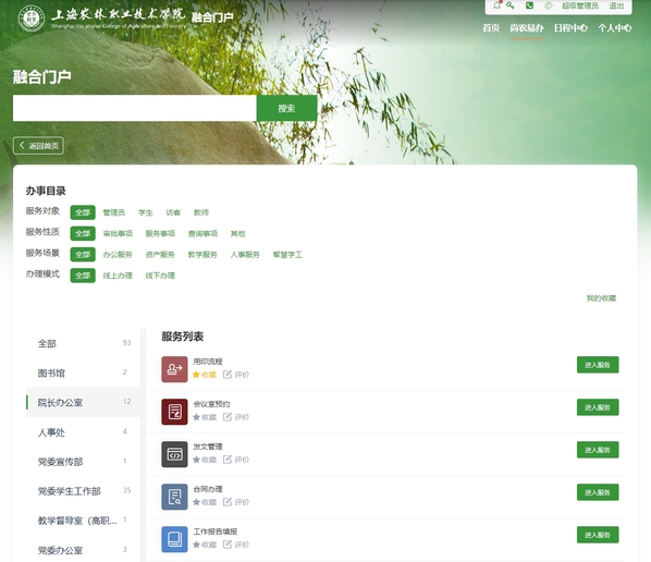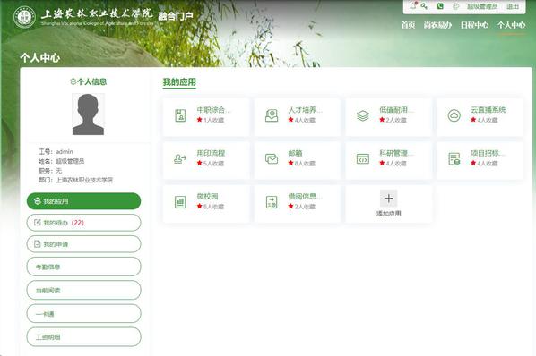 新版门户融合了信息门户、一网通办、应用系统等平台体系,集教务、学工、人事、资产、后勤等服务为一体,集中各部门所有业务流程,推行网上申请、网上审核、网上办理的统一入口,提供应用系统直达、多业务场景应用快捷办理的服务。