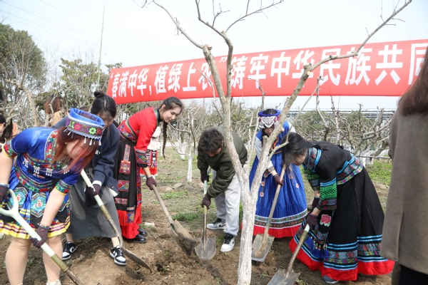 活动现场,陈谊带领大家挥锹培土、扶正苗木、夯实土层……大家齐心协力、相互配合、热情洋溢,共同种下了象征民族团结的石榴林。参加活动的同学表示,这次活动非常有意义,在植树节当天与老师、同学携手种下石榴林,既体验到劳动的快乐,也把民族团结的“种子”根植在心里。