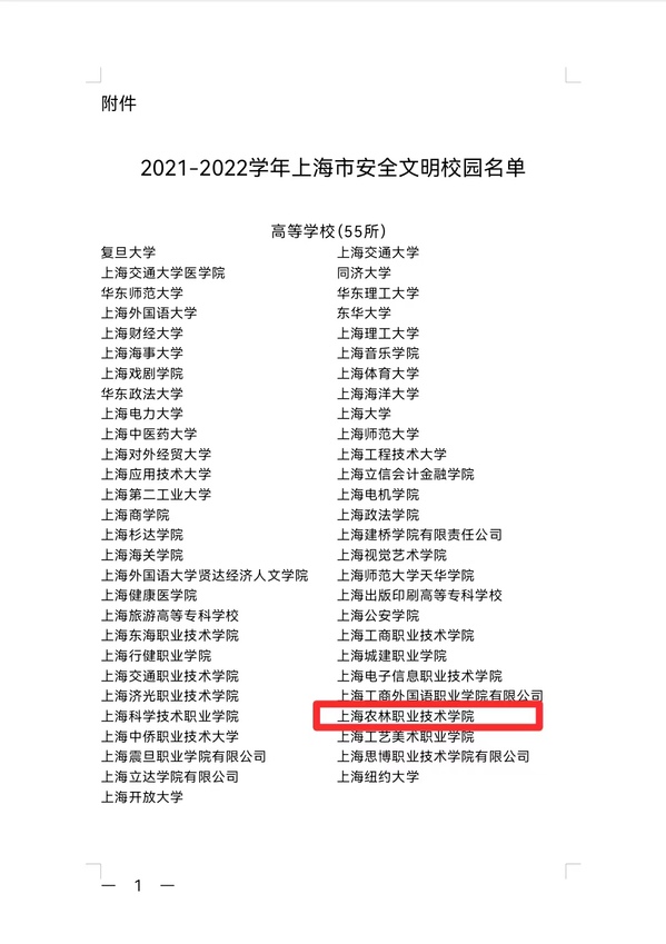 近日,从上海市教育委员会获悉,学院荣获“2021-2022学年上海市安全文明校园”称号。