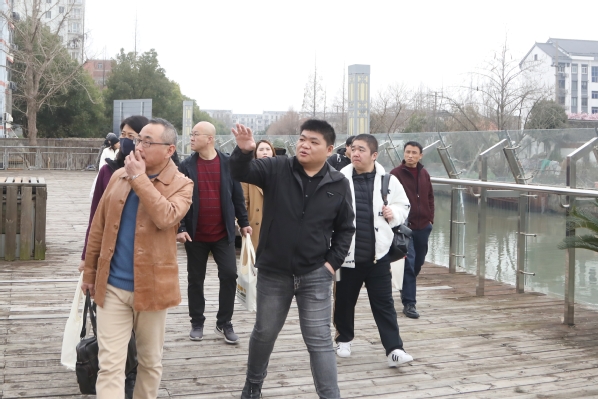 刘晶、陈伟杰老师分批带领新生参观校史馆及校园。