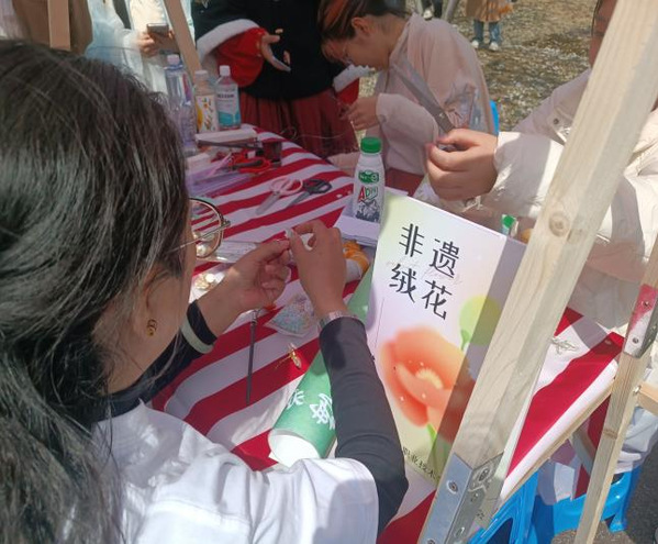 活动期间,上农学子身穿各式中华优秀传统文化服饰,如飘逸的汉服、典雅的旗袍等,展现出中华文化的独特韵味。他们在中医药大学内穿梭,成为一道道亮丽的风景线,吸引了众多师生的目光。我校学子为大家讲解了非遗绒花的来历,并指导现场同学们一起制作,为宣传非遗传统文化贡献青春力量。
