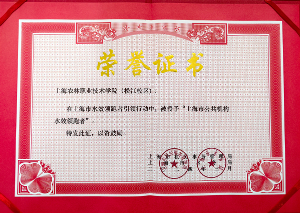 根据《上海市经济和信息化委员会 上海市水务局关于组织开展“十四五”上海市重点用水企业水效领跑者遴选工作的通知》(沪经信节〔2022〕54号)和《上海市机关事务管理局 上海市水务局关于组织开展“十四五”上海市公共机构水校领跑者遴选工作的通知》(沪机管〔2022〕2号)要求,经自愿申报和专家评审,学院节水成效显著,荣获上海市“水效领跑者”称号。