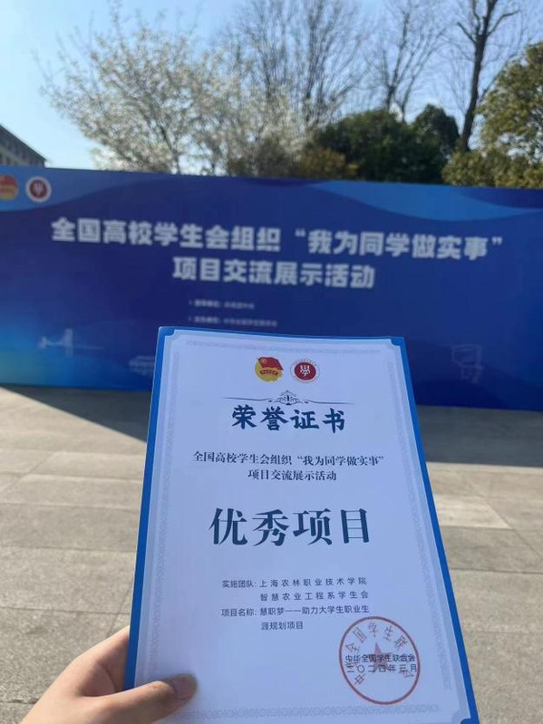 3月22日至24日,由共青团中央指导、中华全国学生联合会主办的首届全国高校学生会组织“我为同学做实事”项目交流展示活动在贵州师范大学举行。经学校推荐、省内推报、全国遴选,智慧农业工程系学生会“慧职梦——助力大学生职业生涯规划”项目在3500余个项目中脱颖而出,最终获得全国高校学生会组织“我为同学做实事”项目交流展示活动“优秀项目”。