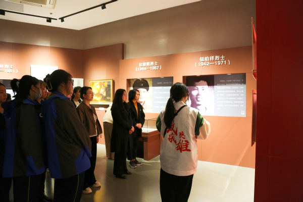 今年清明期间,院团委选拔了30位志愿者服务松江烈士陵园纪念馆讲解、武器装备讲解、祭扫仪式礼兵等岗位。仪式后,师生一行来到园区内的革命烈士纪念馆参观,学生管理党支部书记高东菊对正在馆内服务的3名志愿者进行了亲切慰问,并在学院志愿者的引导和讲解下,观看了“追寻先烈足迹”展播短视频《永不凋谢的芳华》,参观了纪念馆,志愿者们重点介绍了松江各个时期具有代表性的22位烈士的光辉事迹,令全体同志动容。最后,师生一行在学院退役军人志愿者的带领下,来到国防教育园内,志愿者用入伍所学知识,认真的向大家做武器装备讲解。