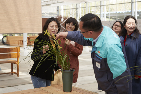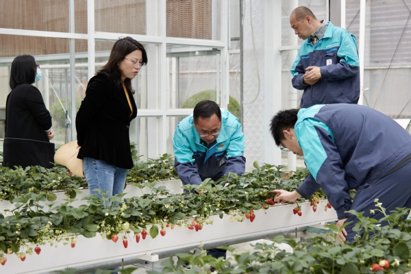 在陈立婧的陪同下,张旭坤一行参观了兰花馆、果树种植区、种养结合区、智慧农业数字化育种与种植中心、农机科普展示厅等地。