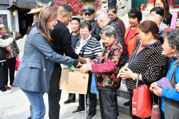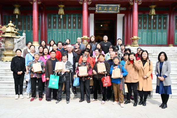 创意系党总支为叶榭镇老年人贴心服务,特意组织农林学生一对一陪着叶榭老年人游园,增加老年人游园体验感,并为老人送上文创学生设计的创意类小作品。