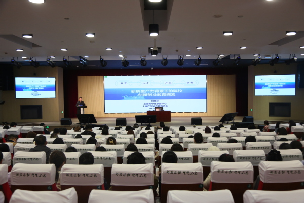 姚栋华以“新质生产力背景下的院校创新创业教育探索”为主题,表示“创新是引领发展的第一动力。新时代面临新机遇,以新产业、新技术、新业态、新模式为代表的新经济蓬勃发展,对创新创业人才提出了新的更高要求,迫切需要加快教育改革创新。”她结合自身工作实际,介绍了上海市学生事务中心在推动高校创新创业领域的经验和成果,同时结合案例分析,分析了遴选优质创业项目及价值挖掘的方法,科研成果转化成创业项目的关键点,科研技术创新点转化成项目亮点的技巧。高度肯定了学院近几年双创教育在制度建设、师资队伍建设、项目培育、赛事成果等方面取得的显著成效,希望学院将创新创业教育与专业教育进一步融合,加快培养应用型、复合型创新创业师资力量,助推学院整体双创教育工作水平的高质量提升。