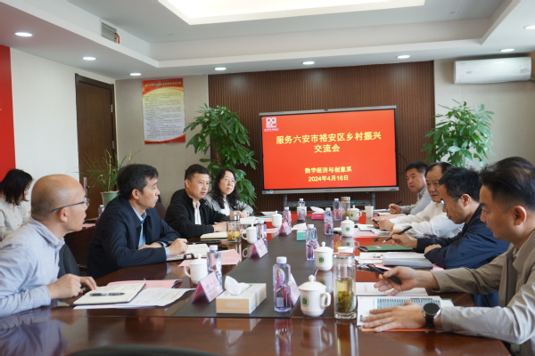 4月16日上午,六安市裕安区农业农村局党组副书记管兵、科教股股长陈小福、双招双引办公室主任杨怀发等一行来校交流2024年乡村振兴工作。副院长费国强出席,院办主任费明、创意系主任路以兴及相关教师参加座谈。