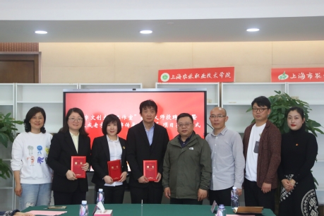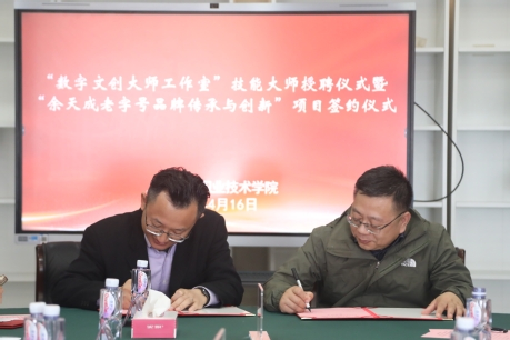 4月16日,在第四会议室,学院举办“数字文创大师工作室”成立暨“余天成老字号品牌传承与创新”项目签约仪式。松江商业发展集团有限公司党委书记、董事长陈朝,松江文旅局非遗中心副主任徐俊国,华东理工大学教授倪海郡,中国电子商会跨境电商工作委员会秘书长沈跃华,上海开放大学研究员魏志慧,余天成公司总经理、民盟上海市医药系统总支副主委张许杰,学院副院长张江,人事处处长张乐平,创意系主任路以兴及相关教师参加,仪式由张乐平主持。
