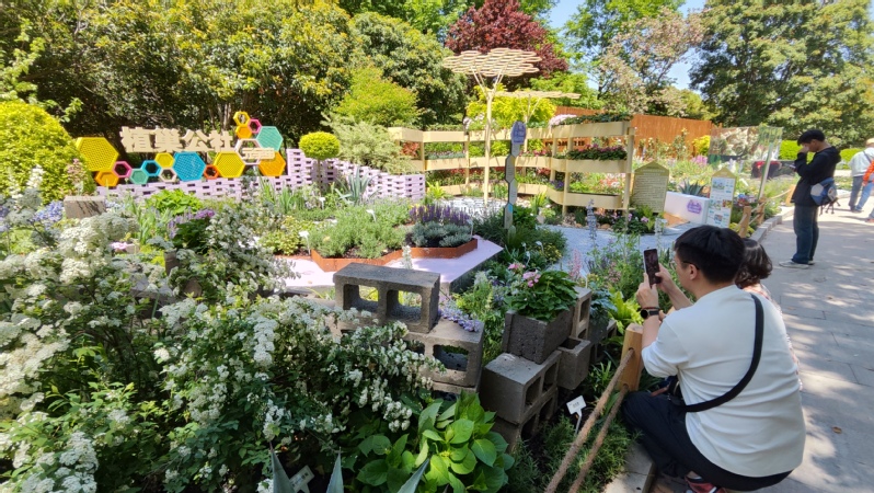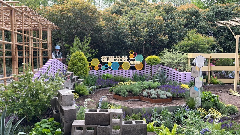 作品已经在上海植物园进行实景展示,其布展施工由植科系师生与上海恒艺园林绿化有限公司共同完成。自3月初起,植科系设计团队积极与施工单位及园区负责人对接,全程参与布展施工流程,汪蓉、陈睿智、李想同学在周清新和赵普莹老师的指导下,对施工过程中的细节进行把控与协商,并完成局部装置的制作与安装,保证展园整体景观效果。同时为更好地展现设计方案中线上线下交互式体验的社区花园设计理念,合作打造的同款元宇宙花园同期上线,让设计方案中线上社交线下活动的新型社区花园设计运营模式得以呈现。