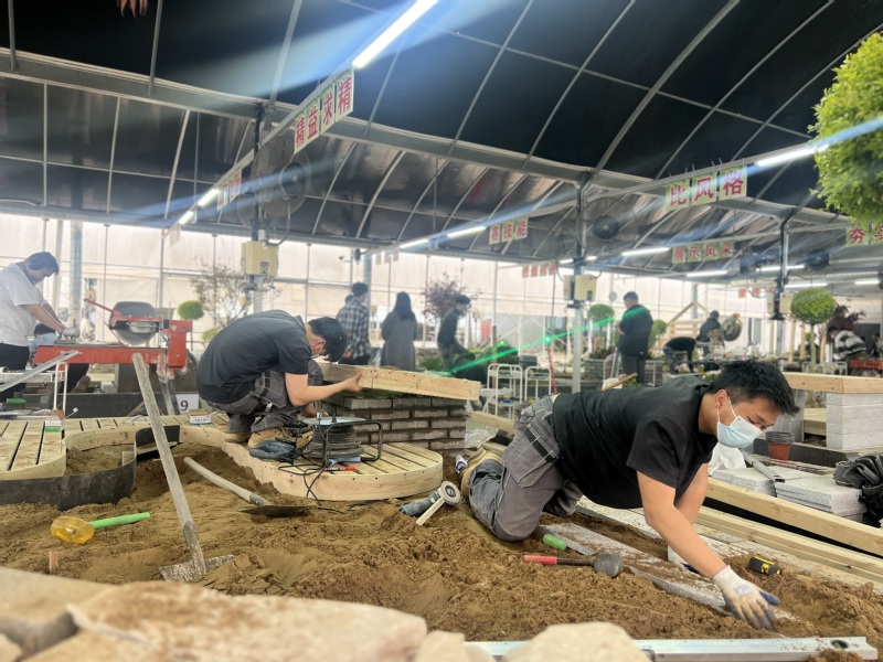 本次比赛历时3天,有来自安徽(世赛国家队)、浙江、上海、江苏的11个长三角地区园林相关专业职业院校参加。参赛选手需针对指定场地(3×5m)设计园艺方案,融合园艺美学与现代家庭园艺潮流,方案涵盖花坛、铺装、水景、木作及绿化空间等元素,力求创意与实用并存。比赛当天以2人一组,限时7小时,按预设方案在梦花源实训场施工,参赛选手需高效协作,根据施工任务要求按时按质完成方案作品,并展现其专业技能与团队协作。