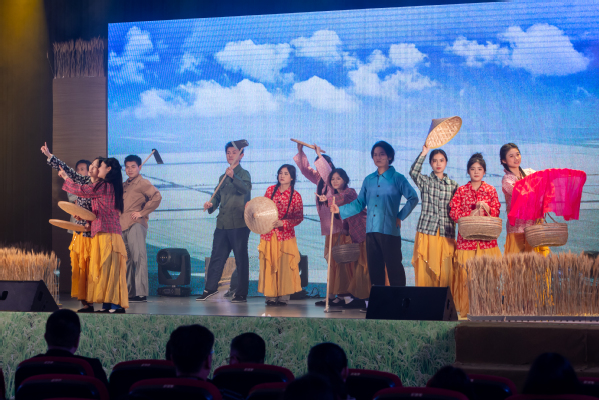 原创农业剧《上农匠心》在开幕式后进行展演,该剧目由学院师生自编、自导、自演,从创作选题到最终展示历时7个月。师生们主动放弃休息时间,克服各种困难,保证排练效果。剧目以上农师生建校70多年来服务“三农”、主动对接乡村振兴和重点产业领域发展、推进农业农村现代化为主线,全视角、立体化、多形式再现了上农老中青三代扎根“三农”沃土、谱写助农华章的奋进故事,彰显出新时代上农师生“自找苦吃”的精气神,充分诠释了上农师生坚守学农爱农强农初心、勇担乡村振兴使命、奋力建设全国一流农林院校的铮铮誓言。在展演现场,扎实的剧情、精湛的表演、真挚的情感都博得了师生们的阵阵掌声,大家纷纷表示,《上农匠心》是我们每一位上农人的剧,激励着我们要知行合一,充分践行学农、知农、爱农、强农、兴农的担当使命。