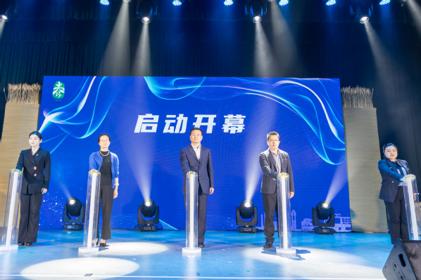 蔡红、马骏、周薇、施佩丽、朱佳乐共同启动本届文化科技节开幕仪式。