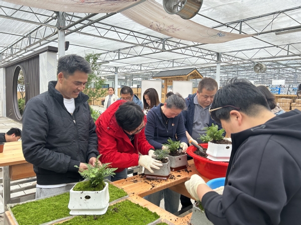 交流会后,双方一同参观实训基地,沉浸式体验学院特色活动盆景微景观制作,进一步了解了学院专业特色和校园文化。