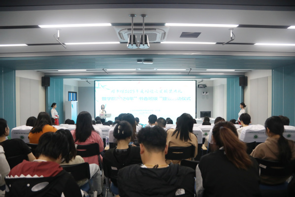 启动仪式由学工部副部长张莎莎主持。邵阳、潘国俭,樊清誉、高东菊、张海娜、游小英、陆琳共同启动学院2024年“书香班级”建设。