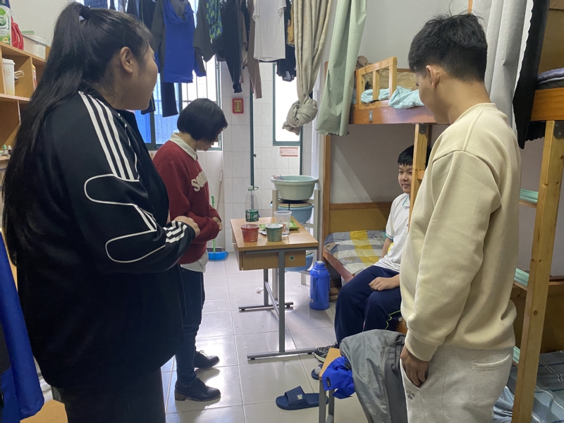 过程中,学工部、各系学工负责人、辅导员、班主任深入每一间学生寝室,重点围绕宿舍消防安全、卫生、内务整理、安全用电及行为规范等方面展开。针对出现的卫生死角、阳台杂物、可能存在用电安全风险等情况,进行了现场批评教育并立即整改。