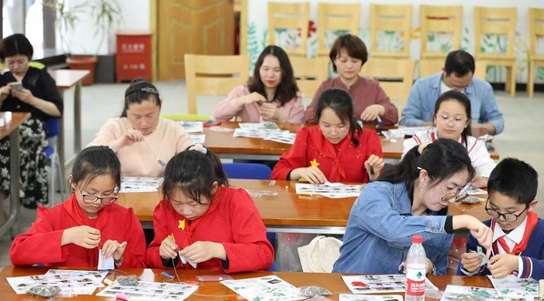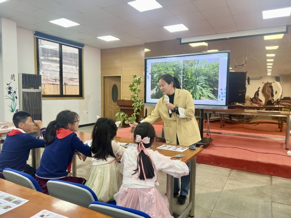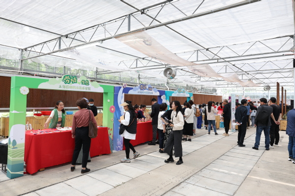活动现场,嘉宾们参观松江区学校劳动教育成果展,观摩学生劳动教育微课程展示和劳动实践活动。实训基地为大家准备了实践体验课程——艾草香包制作体验,以科普艾草小知识为起点,从触、闻、看、尝四个方面生动展示如何辨别真假艾草。