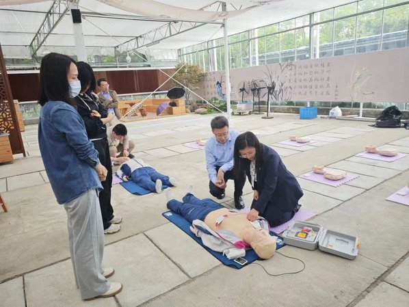 活动上,袁少英与中心医院行政二党支部书记朱仲庚签署支部共建协议。朱仲庚为后勤服务党支部、实训基地党支部党员群众开展了“第一目击者”心肺复苏现场救护技能培训,就常见现场急救“黄金4分钟”急救知识、胸外按压、人工呼吸、除颤仪的使用方法等心肺复苏术方法进行了讲解。讲座结束后进行了演示示范,组织大家进行实操练习,帮助大家掌握这一重要急救技能。大家兴致高涨,积极参与练习,不断向讲解老师提出许多相关急救知识,现场学习氛围浓厚。