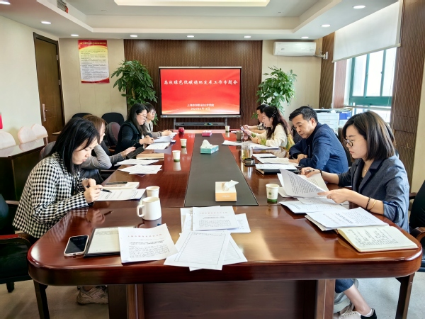 会上,全体参会人员学习了《上海市教育委员会关于进一步推动高等学校绿色低碳循环发展工作的通知》文件精神。陈立婧指出,践行和推动绿色低碳循环发展是全面贯彻党的二十大精神和习近平总书记考察上海重要讲话精神的具体体现,学院要将绿色低碳循环发展融入师生日常教育,引导师生牢固树立低碳发展理念,各职能部门要结合工作实际采取针对性措施,在制度建设、节能降耗、宣传教育、科研教学等方面加大工作力度,在全校范围内形成全员绿色低碳发展的共识,积极争创生态文明示范校。