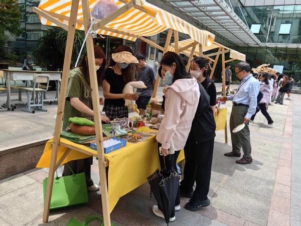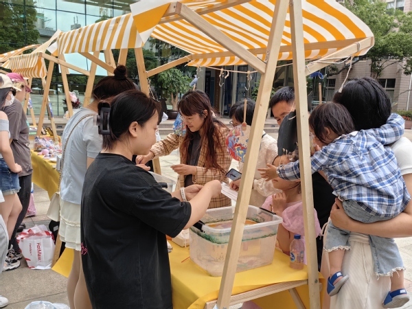 综合集市上,学生们的文创作品琳琅满目,从文创文具到精美饰品,每一件都凝聚着学生们的辛勤与创意。现场的糖画和漆扇互动体验,更是吸引了众多师生的积极参与,现场气氛活跃非凡。