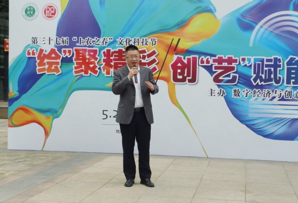 5月20日中午,由数字经济与创意系承办的“‘绘’聚精彩 创‘艺’赋能”学生作品展暨综合集市在综合楼底开幕。学院领导、学工部、团委负责人、各系学工负责人、创意系党政班子、教师、辅导员和学生代表参加。