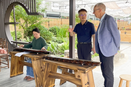 在兰花馆,我院教师向Jasper教授介绍了国兰的主要品种及兰花栽培技术,双方一同感受了识兰、观色、闻香、赏姿、品韵等中国传统兰花非遗文化。成文竞还向Jasper教授赠送了植科系师生精心制作的“花·果·药”真花艺术—矮牵牛压花工艺作品。