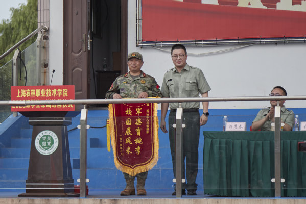 邵阳代表学院向承训单位赠送锦旗,对承训教官的辛勤付出表示感谢。并宣读在军训中表现优异的先进集体和个人名单。