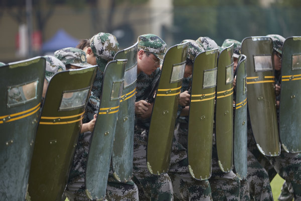 伴随着《分列式进行曲》激昂的旋律,一营到五营共二十七个连队依次进行分列式展示,一营至五营共二十七个连队依次进行了分列式展示。响亮的口号、矫健的步伐,不仅彰显了同学们蓬勃的朝气和青春的活力,更体现了他们在军训中锤炼出的坚韧不拔和团结协作的精神。紧随其后的是警棍盾牌、拳术、战术演练三个特色科目汇报表演,虎虎生威、气贯长虹,展示了上农学子不畏艰难、勇往直前的顽强意志。