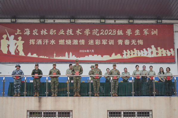 仪式最后,周晓光宣布上海农林职业技术学院2023级学生军训圆满结营。
