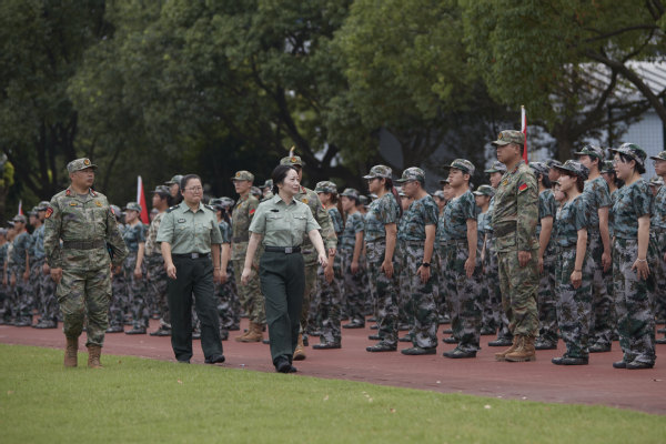 7月10日上午,2023年学生军训结营仪式在校内田径场举行。松江区委常委、人民武装部部长周晓光,院长陈立婧,党委副书记、副院长邵阳出席,人民武装部、学生处、各系学生工作负责人、全体承训教官、辅导员及2023级全体参训学生参加。