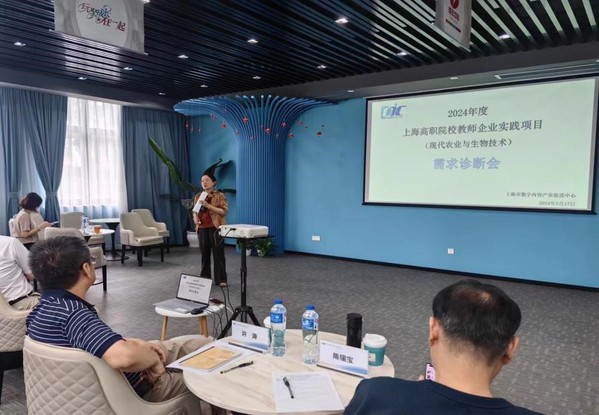 为丰富高职教师企业实践经验,建设一支高素质教师队伍,7月17日,2024年上海市高职高专院校现代农业与生物技术类专业教学指导委员会教师企业实践项目需求诊断会在浦东康桥Eone园区25号楼举行。上海教育报刊总社党委书记许涛、上海市高职高专院校土建类专业教学指导委员会主任陈锡宝、上海市高职高专院校现代农业与生物技术类专业教学指导委员会主任蔡红、上海丰科生物科技股份有限公司技术总监李金鑫以及13位企业实践教师出席会议。会议由上海市数字内容产业促进中心副主任丁燕主持。