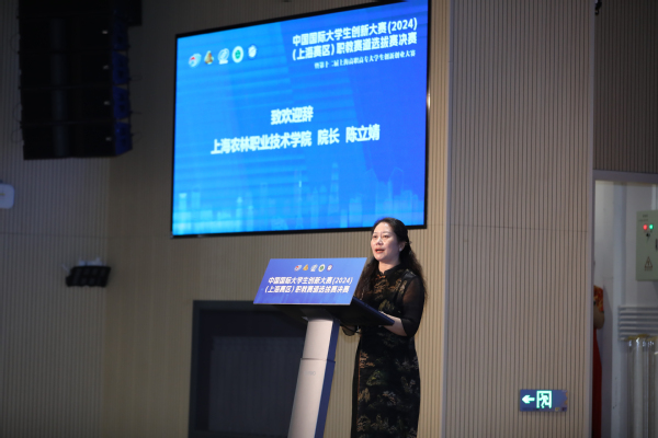 陈立婧代表承办单位致辞。她表示,中国国际大学生创新大赛是覆盖全国影响最大的双创赛事,是中国高校创新能力的蓄水池,也是广大学生的练兵场,上海农林职业技术学院非常荣幸能够第二年承办这项重要赛事,为我市大学生创新大赛的成功举办贡献上农力量。作为比赛承办单位,学院会全力做好赛事服务工作,保障赛事顺利进行,争取将本次大赛办出水平、办出特色、办出影响。