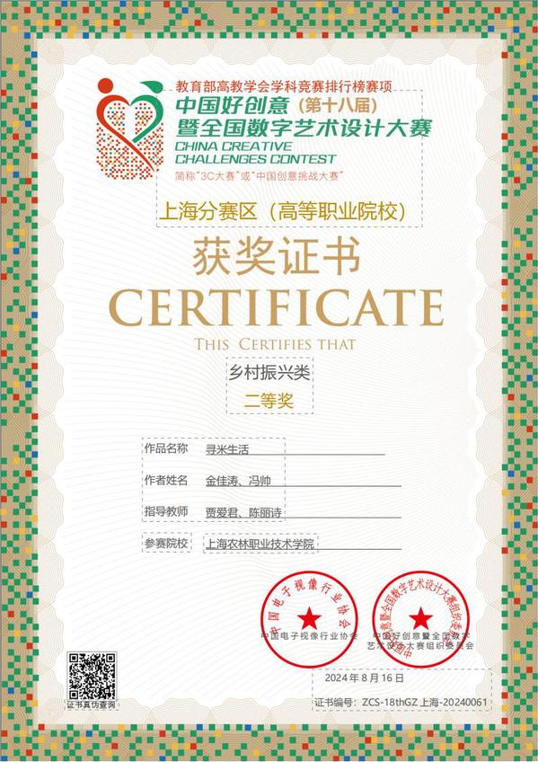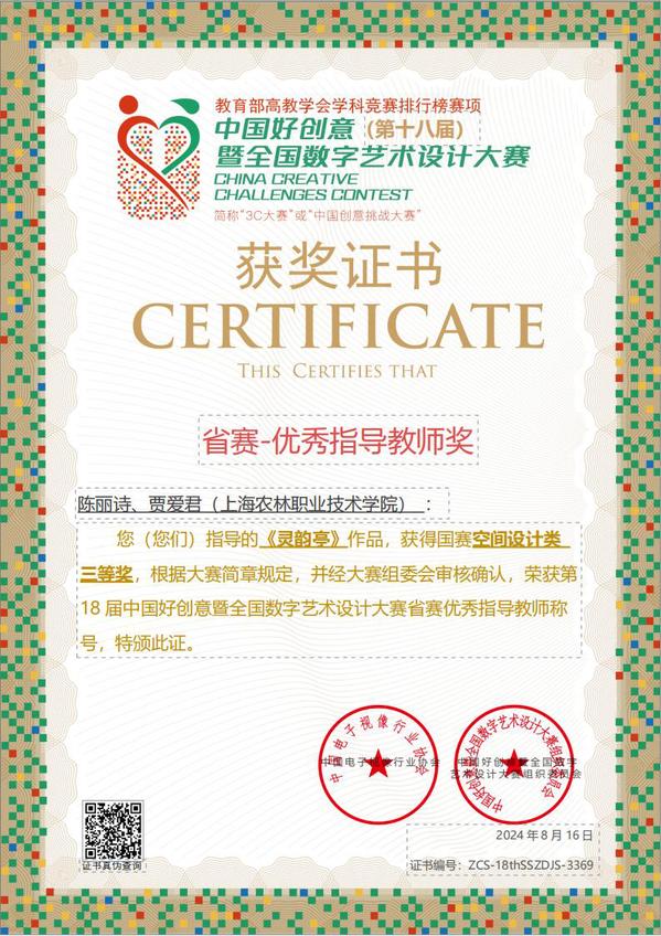 近日,第十八届中国好创意暨全国数字艺术设计大赛(China Creative Challenges Contest,简称3C大赛或“中国创意挑战大赛”)落下帷幕,创意系学生首次参赛获乡村振兴类和空间设计类市赛二等奖1项、三等奖2项,并在国赛中斩获三等奖1项,展现了创意系学子在数字艺术设计领域的创新精神。